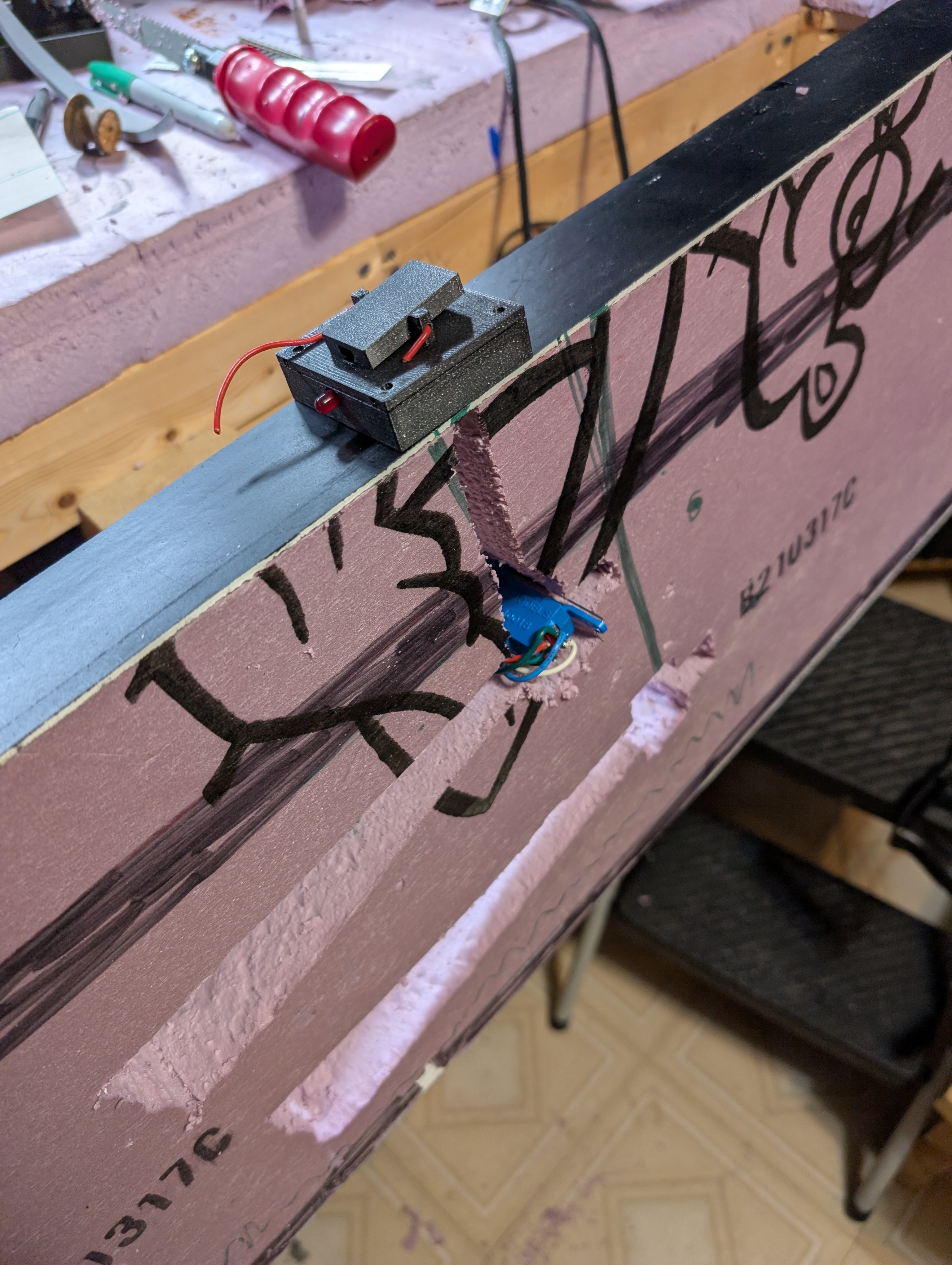- First rough print of a switch toggle with LEDs on edge of fascia.